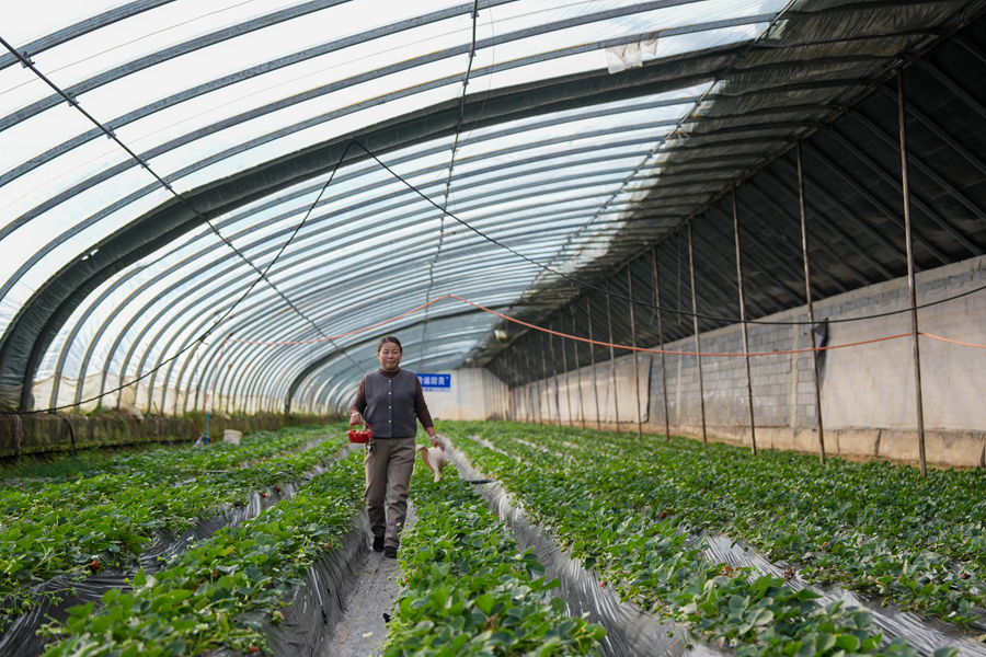 隆冬时节,在青海省西宁市湟中区丹麻寺村,草莓采摘园农户蒲继有一早就在温室大棚忙活,田埂上鲜红饱满的草莓长势喜人,清甜果香扑面而来。